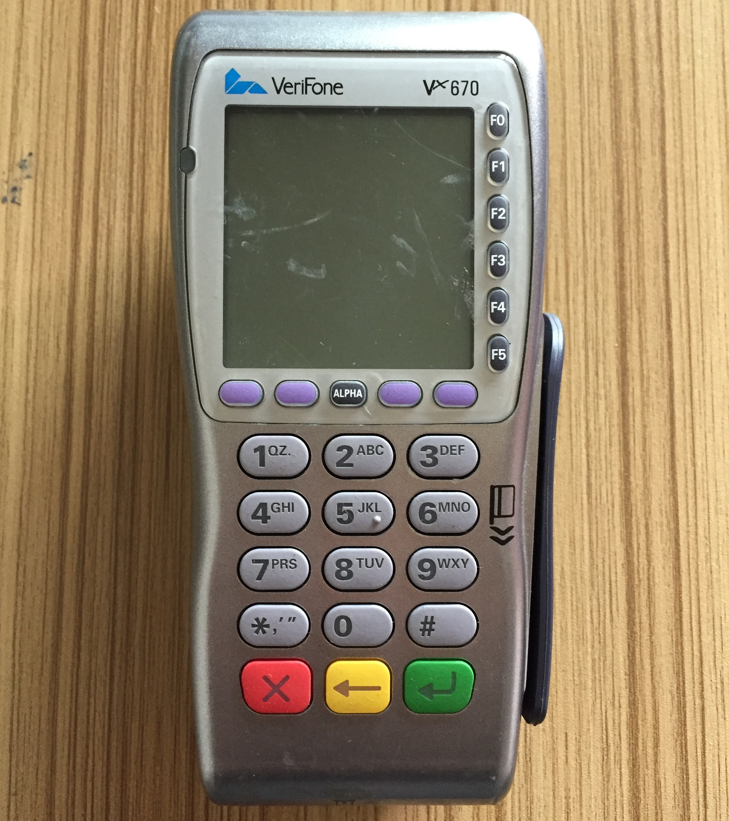 VeriFone's VX 670 is the smallest all-in-one wireless handheld payment device in the world. Brought to you by our innovative Purpose Inspired Design program – with a focus on real world usage – the VX 670 changes everything. This supremely functional yet elegant device is tailored from top to bottom for a pay-anywhere, anytime environment. VeriFone’s patent-pending MAXui design, with its stunning large, highresolution, white backlit display and large blue backlit keys, is easy to use under any lighting condition. A tapered design and ergonomically balanced midpoint help the VX 670 fit comfortably in even the smallest hands, and the rugged, drop-resistant, spill-resistant case holds up to the most demanding conditions. The hidden integrated printer with its dual-tear bar, quickly produces receipts, is whisperquiet and simple to reload